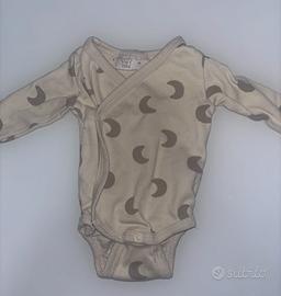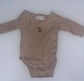Colore beige e marrone Disegno con lune Tessuto morbido Chiusura con bottoncini Apertura davanti incrociata