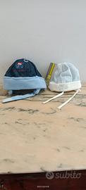 2 Cappellini per bimbo. Di cui 1 "F.lli Campagnolo" 6/9 mesi (colore celeste e bianco 100% cotone) e 1 (Jeans e paile color celeste) 12/18 mesi. altezza 46/48 cm. NUOVI!!! Ancora con cartellino. OFFERTA LIBERA