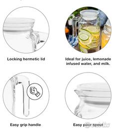 Vendo per INUTILIZZO causa ERRATO ACQUISTO SET di 2 (Due) Caraffe Frigoverre Rocco Bormioli - Vetro. Coperchi Ermetici. -Caraffa Quadrata: 8cm x 8cm; - Vetro - Altezza: 22,8 cm; Capacità : 1 Lt. -Caraffa / Brocca rotonda con beccuccio. Altezza : 16 cm; Diam. : 11 cm; Capacità : 0,75 Lt. - Vetro. Contenitori ideali per conservare, liquidi, in frigo e non; per chi desidera utilizzare prodotti di alta qualità in cucina. TUTTI GLI ARTICOLI DEL SET SONO IN PERFETTE , NONCHÉ OTTIME CONDIZIONI, Ognuna con i Suoi COPERCHI CON CHIUSURA ERMETICA. NO GRAFFI, NO DANNI, NO SCHEGGIATURE !!!!