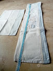 💚 1 completo "BrucoBruco" bianco con gattino ricamato e bordini a righe azzurro(il bordino della federa è azzurro più tenue)