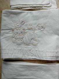 💛 1 completo lenzuola unisex bianco con gattino ricamato sul beige