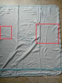 💙 1 copertina in cotone celeste"ellepi" con leone ricamato e bordino presenta due macchie chiare (vedi foto)