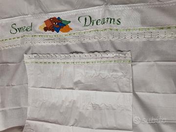 Set composto da composè culla completo di fodera, lenzuola sotto e sopra. adatto ai primi anni di vita. Nuovo mai usato. Misure 90x120cm Composè lettino, trio 3 pezzi. Set nanna per bimbo/bimba completo di: Federa, lenzuolo per il materassino e lenzuolino ricamato INTERAMENTE A MANO, disegno dell'orsetto che dorme e scritta Sweet dreams(sogni d'oro) per augurare buona notte ai vostri piccoli o per fare un regalo speciale. Ottima qualità in cotone, colore unisex/neutro verde chiaro. Misure 120x180. Per un regalo originale, personalizzato e soprattutto unico essendo realizzata la fantasia del ricamo artigianalmente #handmade #handmadewithlove #sweetdreams #sweetdreamsstyle #sweetdream #sognidoro #lenzuola #lenzuolacotone #lenzuolabambini #setlenzuola #setlenzuolaculla #setlenzuolacarrozzina #setlenzuolalettino #setlenzuolabambino #setlenzuolabambina #orsetto #orsettoteddy #nanna #nannaneonato #baby #babygirl #babyboy #gift #giftideas #giftidea #bebe
