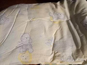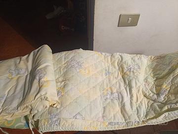 vendo 1 coperta piumone 1 paracolpi coordinato lettino, 1 coperta trapunta 1 paracolpi coordinato lettino. 1 cuscino lettino.