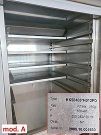 - mod. A armadio BT carrellato di marca Mondial Freddo mod. KK28403*H012PD funzionante a 220/240v probabilmente del 2009 a due ante con vani dim. 80X115cm h214cm, int. 68X89cm h155cm, vani 61X76cm adatti per doppia teglia 40X60cm o singola 80X60cm - 1.300,00€