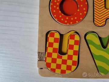 Vendo 2 giochi : L'alfabeto di legno presenta un angolo rovinato, ma non è pericoloso per i bambini (vedi foto) . Simpatico, colorato e utile per insegnare ai bambini le lettere. L'altro gioco è un cofanetto in legno richiudibile con una lavagna esterna per di segnarci con i gessetti, e all'interno 2 lavagne magnetiche con i relativi magneti n. 72 di varie forme e colori per creare paesaggi, personaggi e animali. Made in France Disponibile a vendere anche i giochi singolarmente. Disponibile a consegna di persona per chi abita in zona Mantova o Viadana , per esempio trovandosi al parcheggio del Tosano