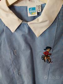 Vendo due grembiuli per la scuola dell'infanzia - asilo - materna quadretti azzurri con bottoni per maschietto taglia (110 cm - 5 anni):