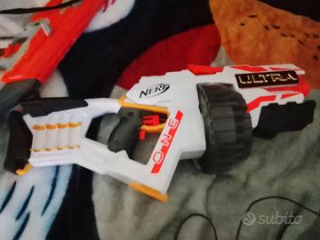 2 Nerf nuovi , un cecchino e una mitragliatrice elettrica a batteria che spara a raffica ottimo per i bambini appassionati di sparatutto