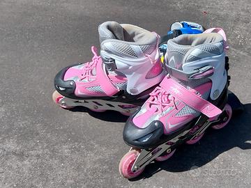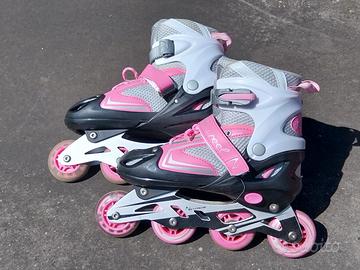 Due paia di pattini bambina come nuovi con misura plantare regolabili, regalo insieme paracolpi ginacchia e gomiti + caschetti. Prezzo totale 45 euro acquistati insieme.