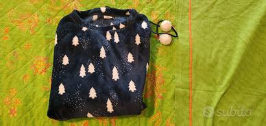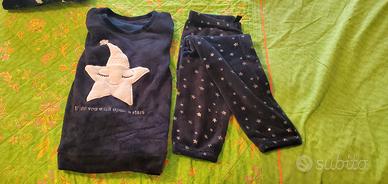 2 pantaloni pile in ottimo stato, per ragazza alta 160-165 cm, taglia 44 circa, euro 5 ciascuno; Pigiama pile blu notte completo con stella, come nuovo, euro 10, tg. 44; 2 maglie pigiama pile blu con abeti e nera con stelle, ottimo stato, tg. 44, euro 5 ciascuna.
