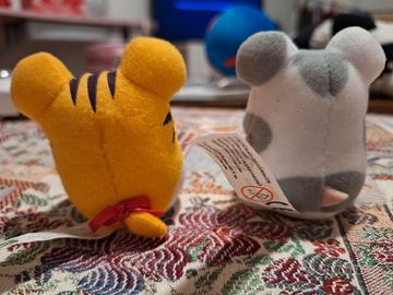 Set di 2 peluche dei personaggi di Hamtaro: Tigra e Ghiotto. Perfetti per i fan della serie.