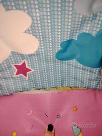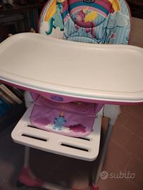 Seggiolone rosa: Usato poche volte perché in una seconda casa. C'è solo uno strappo della cucitura della fodera(come da foto). Da qui il prezzo basso.