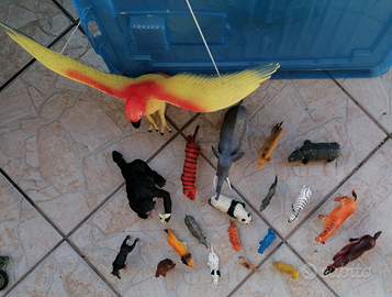 Collezione pupazzetti in plastica dura, animali di piccoli e grandi dimensioni, usati, senza parti rotti(eccetto l'orecchio del cavallino arancione, vedi foto), da ripulire.