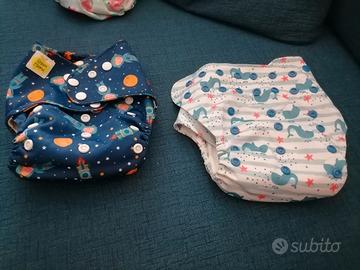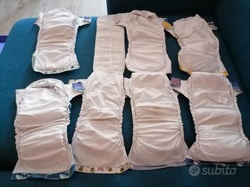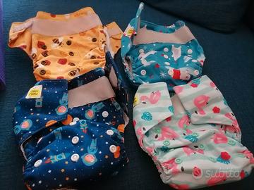 3 pannolini Grovia AIO con bottoni (verde, grigio, fiori) + 6 Inserti grovia + adattatori (da bottoni a velcro) 2 pannolini Green Mama AIO con bottoni (astronauti, balene) con 2 inserti Green Mama 4 pannolini Green Mama AIO con velcro (astronauti, api, fenicotteri, orsi) con 2 inserti Green Mama 1 pannolino Green Mama Pocket con bottoni (angurie) 1 pannolino Green Mama Pocket con velcro (fenicotteri) + 8 inserti Green Mama aggiuntivi 2 pannolini Charlie Banana Pocket con bottoni (pirati, cactus) 7 pannolini Bambino Mio AIO con velcro (balene, api, nuvole, gatti, elefanti, bianco, bradipi) 1 pannolino Thirsties AIO con bottoni (blu) 1 pannolino Blumchen AIO con bottoni (dinosauri)