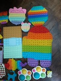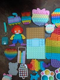 23 pop it i varie dimensioni e forme: among US, One piece, cellulare, PC, topolino, gelato.....tra cui 3 braccialetti.