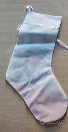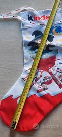 Calza della Befana piccola, della Kinder con laccetto di chiusura e gancio da appendere con la scritta Kinder, lunghezza dalla punta all'imbocco 40 cm.