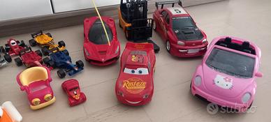 Gruppo di 26 macchinine: 2 serie Minions, 1 puffi, 6 morbide da bagno, 1 autoscala, 2 a molla, 1 antistress, 5 formula 1, macchinina, hot wheels, 4 macchinine telecomandate senza telecomando non funzionanti, 1 hello kitty, 1 snoopy.