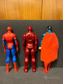 3 action figure Superman, Iron Man e Spider-Man da 30 cm (12 pollici). Presentano punti di articolazione per pose dinamiche. Dettagli e decorazioni realistiche. L’action figure di Superman include un mantello in stoffa. Ideali sia per il gioco che per la collezione. Nuovissimi prezzo affare, senza confezione originale perché erano in esposizione