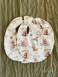 3 Bavette neonato double face personalizzabili con nome e varietà di fantasia di tessuti