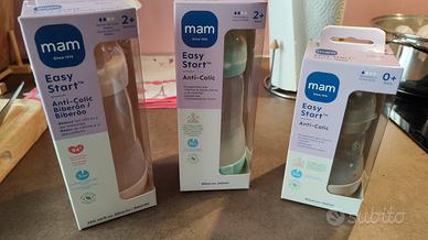 Vendo tre biberon MAM anticolica, ideali per l'allattamento misto sin dai primi mesi.