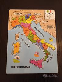 1 puzzle di legno regioni italiane, 1 puzzle clementoni da 250 pezzi e 1 gioco labirinto in legno