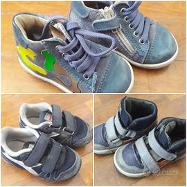 Lotto composto da tre paia di scarpe per bambino. - Scarpe azzurre con lacci e zip laterale. - Scarpe blu con chiusura a velcro. - Scarpe blu e grigie con chiusura a velcro. Scarpe in VERA PELLE. Per numero, marca e dettagli vedi singoli annunci nel mio profilo. Consegna gratuita province Ancona e Macerata, spedizione tuttosubito. Le recensioni sono la migliore garanzia.