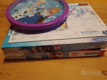 Puzzle Frozen Panorama Clementoni 160 pezzi completo . SuperColor puzzle Clementoni Frozen II 104 pezzi completo. Orologio da parete Frozen usato perfettamente funzionante. Puzzle Trefl Disney Olaf's Frozen Adventure 30 pezzi.Tutto in ottimo stato.