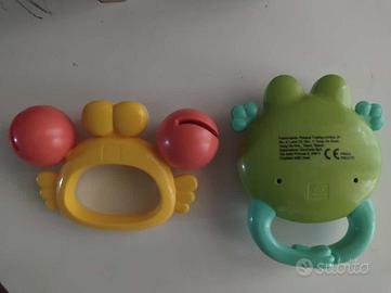Vendo 3 sonagli. Due a forma di animali e uno con tre campanelle con tonalità di colore a scalare, con la funzione di far percepire al bambino le differenze di colore. Condizioni perfette.