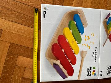 Offerta per acquisto di 3 strumenti musicali giochi per bambini in legno in ottime condizioni Plan toys - xilofono con scatola Plan toys - fisarmonica Hape - ukulele