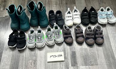 Genitore di 2 gemelli maschi, vendo intero blocco di scarpe taglia dal 20 al 24:comprende n.13 paia di scarpe numero 20-21-22; n.11 paia di scarpe n. 23; n. 7 paia di scarpe n. 24.