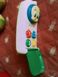 Grandi giocattoli marca CHICCO per bambini, a) b) e d) con vano batterie AA protetto da vite: