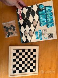 Gioco da tavolo in legno con piano a due facce per possibilità di doppio gioco: DAMA o TRIA