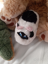 4 puluche , un coccodrillo , un orsacchiotto , una .mucca e una gattina , usati , ben tenuti e lavati in lavatrice .