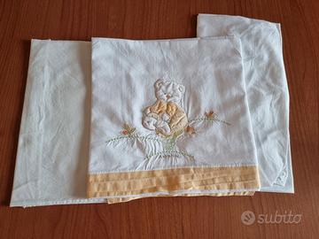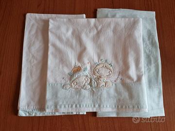 Vendo 4 set lenzuola per carrozzina, formate da lenzuolo sotto con angoli lenzuolo sopra e federa per cuscino.