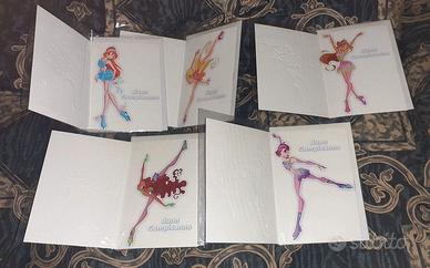 DA COLLEZIONE SET DI 5 BIGLIETTO GIRLS RAGAZZE CARTONI ANIMATI RAINBOW WINX SERIE PATTINATRICI SU GHIACCIO ON ICE. NUOVI IN BUSTA. ORIGINALI, VINTAGE. TICKET CARDS DI TECNA, BLOOM, STELLA, FLORA, AISHA PATTINA PATTINI PATTINAGGIO ARTISTICO. IDELAI PER FESTE COMPLEANNI AUGURI BAMBINE BIMBE LUDOTECA