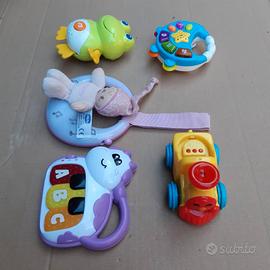 5 giocattoli elettronici con luci e suoni per bambini: un Piano Mucca Mod.11159 Chicco, una Locomotiva Chicco, e altri come da foto allegate, escluso batterie. Vendo a Euro 3 cadauno oppure su richiesta tutti a Euro 13 e do in omaggio il Clean Robot da utilizzare come giocattolo visto che pulisce malissimo i pavimenti. Posso spedire oppure si possono ritirare a mano a Bologna e provincia.