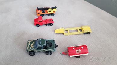 Una gru , un tir , un rimorchio , un rimorchio pompieri , e una jeep fuoristrada pickup