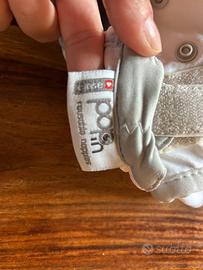 Esterno impermeabile e interno in cotone, due livelli di protezione assorbente. Chiusura con bottoni e regolazione per le diverse taglie