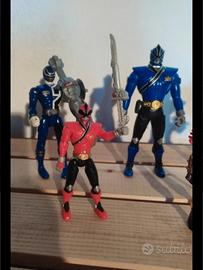 Set di 5 action figure Power Rangers, in ottime condizioni. I tre più grandi hanno effetti sonori e hanno tasti per azionare diverse funzioni (vendo singolarmente a €5 l'uno). I piccoli sono snodati e non hanno effetti sono (vendo singolarmente a €3 l'uno). Marca bandai