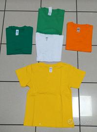 VENDO LOTTO 5 T-SHIRT BAMBINO TAGLIA 5/6 ANNI 📌 DETTAGLI LOTTO: - Quantità : 5 pezzi - Taglia: 5/6 anni - Altezza 110cm - Condizioni: NUOVE, MAI USATE, MAI LAVATE - Tessuto: 100% Cotone, tessuto leggero e traspirante ideale per primavera/estate - Colori inclusi: Verde scuro, Verde chiaro, Bianco, Arancione, Giallo come da foto - Vestibilità : Girocollo, manica corta, modello classico unisex