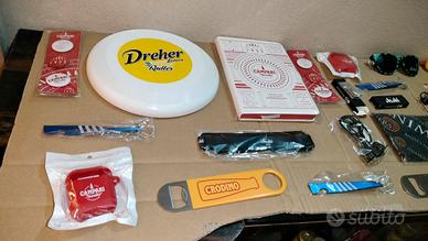 lotto stock composto da 50 gadget e accessori misti pubblicitari come portachiavi - cavatappi apri bottiglie - bandane - cuffie auricolari per telefono cellulare smartphone - pin spilla/e e altro ancora