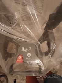 Vendo a 50 euro, Trilogy Inglesina comprata 7 anni fa, tessuto di colore grigio chiaro e finiture di plastica nere, composta da: 1 navicella/culla (dimensione comoda utilizzabile come culla per i primi mesi, posizionandola sullo stand-up); 2 stand-up; 3 passeggino; 4 seggiolino auto (ovetto); 5 welcome pad (materassino per i primi mesi; 6 coprigambe imbottito+ borsa. Sistema richiudibile. L'inserimento di una delle due ruote davanti (in foto) è da revisionare/aggiustare in quanto la ruota tendeva a staccarsi a.causa dell'uso. In più, inceratina trasparente copripioggia. Il tutto conservato benissimo, come nuovo, se non fosse per l'attacco difettoso della ruota di cui sopra.