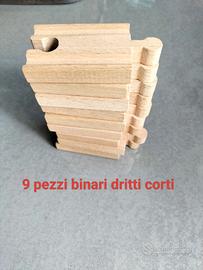 Vendo binari in legno, come da foto ( tipo Brico, Lidl...)(anche singolarmente), per comporre piste per trenini o macchinine (eventualmente possono essere utilizzate anche macchinine in metallo delle dovute dimensioni) di diverse forme e dimensioni. Prezzo 1,00 € al pezzo. Se si desiderano più pezzi farò annunci ad ok! Prima di acquistare scrivermi un messaggio sul numero e tipo di pezzi di vostro interesse, grazie. Ritiro o spese di spedizione a carico dell'acquirente. L' intero lotto è composto da: