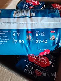 Come da annuncio vendo 54 Pannolini Pampers Salvapigiamino. Mutandine assorbenti per bambini da 8 a 12 anni. Stock da 54 pannolini, 6 pacchi da 9 mutandine ciascuno. Spedizione disponibile con TuttoSubito o ritiro in zona Bologna e provincia. Grazie mille, Fortunato.