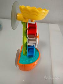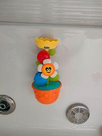 Il fiorellino è della Chicco, ha 2 ventose posteriori per poterlo attaccare alla vasca e mettendo l'acqua sopra girano le rotelline.
