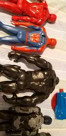 6 personaggi Marvel e DC nello specifico Batman, Hulk, Spiderman, Ironman, capitano America, Venom con scudo che fa fare sei suoni a quattro personaggi predisposti con lo stesso attacco dello scudo.