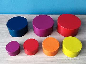 7 scatole rotonde colorate