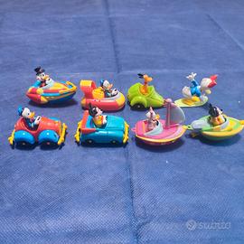 8 figure in plastica marca Disney raffiguranti Topolino in auto, Paperino in auto, Minnie in barca a vela, Topolino in motoscafo, Paperone in motoscafo, Paperino in aliscafo, Pluto nel rimorchio e Paperina in surf, perfetti mai usati - Lunghezza cm 5,5 / 6 - In vendita anche separatamente al prezzo di € 5,00 cadauno