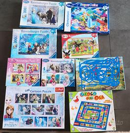 8 puzzle + gioco dell'oca. puzzle Ravensburger, Clementoni con personaggi di Frozen, Bing, in ottime condizioni.