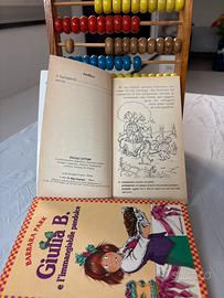 Abaco in legno educativo +due libri ,Giulia B e l’immngiabile pandolce,piccoli lettori il taglia parole.